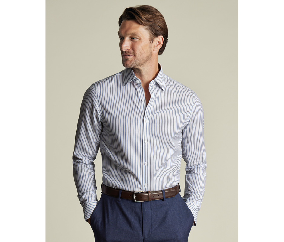 Charles Tyrwhitt Non-Iron Twill Stripe Shirt in Indigo Blue