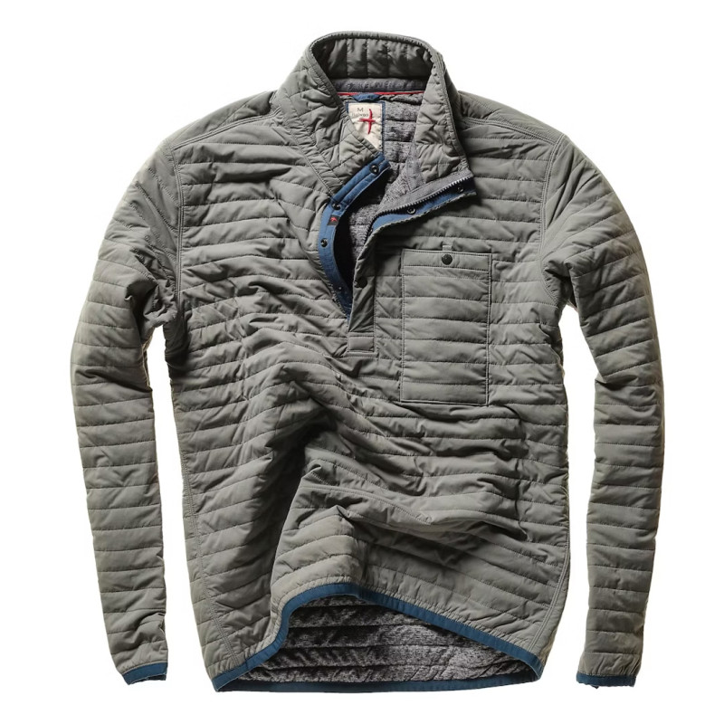 For those seeking a more sophisticated look from their outerwear—without looking like they just got off a summit trail—this pullover fits the bill. It performs just as well as any mountaineering-focused layer but looks a heck of a lot better while doing it. The outer shell is breathable and water-resistant, with just the right mix of nylon and spandex for a little mobility-enhancing stretch. Insulation is provided by 60 grams of warm and dense poly fill. Handsome heritage details include a quilted stand-up collar, deep snap chest pocket, zip and snap front quarter opening, black oxidized hardware, and lycra-covered cuffs and hem. It does run a little small, so consider sizing up.