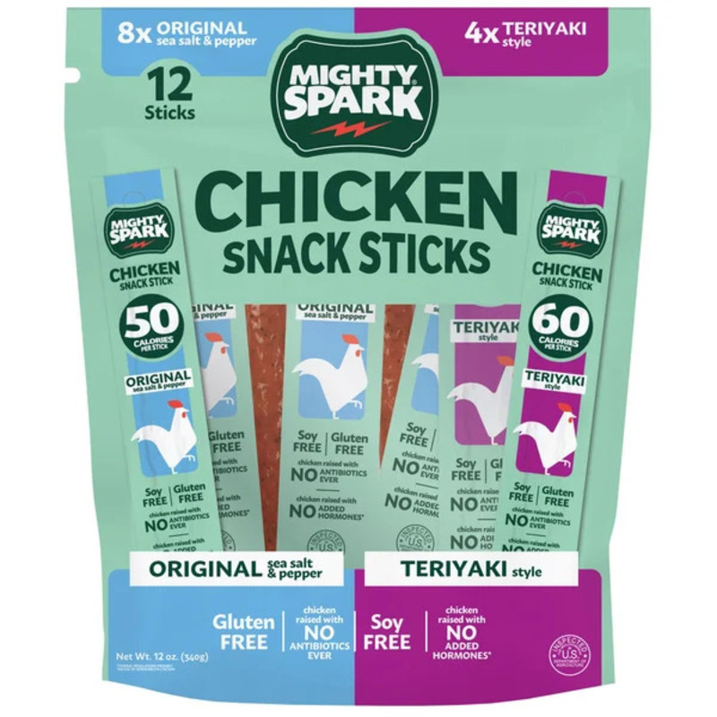Mighty Spark Chicken Snack Sticks just dropped a variety pack at Costco, and fans are thrilled about it. Each package contains 8 Original Sea Salt & Pepper and 4 Teriyaki Style chicken snack sticks and retails for $14.74. Each stick is 1-ounce, 50- to 60- calories and 6-grams of protein, as well as gluten- and soy-free.